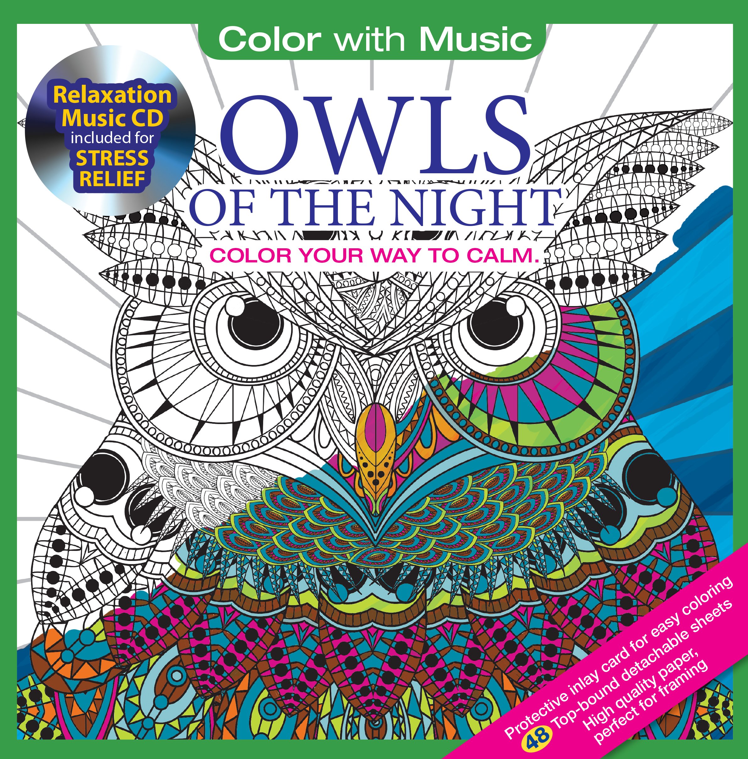 Owls Adult Coloring Book With Relaxation Cd Color With Music